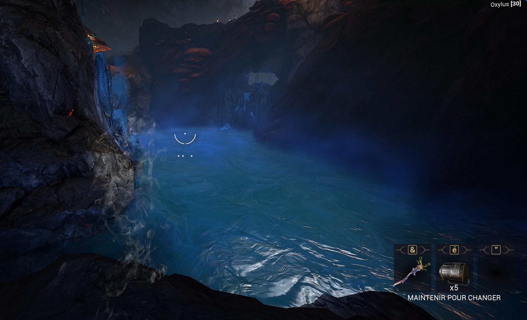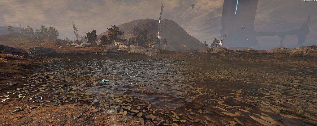 Il n’y a pas systématiquement de poissons sur l’ensemble du point d’eau, ils se déplacent, comme tout banc de poissons. La sentinelle Oxylus est pratique pour voir où ils se situent. Tant que vous ne la possédez pas, équipez votre harpon, attendez une dizaine de secondes, et promenez vous le long du point d’eau si vous ne voyez toujours rien apparaître.