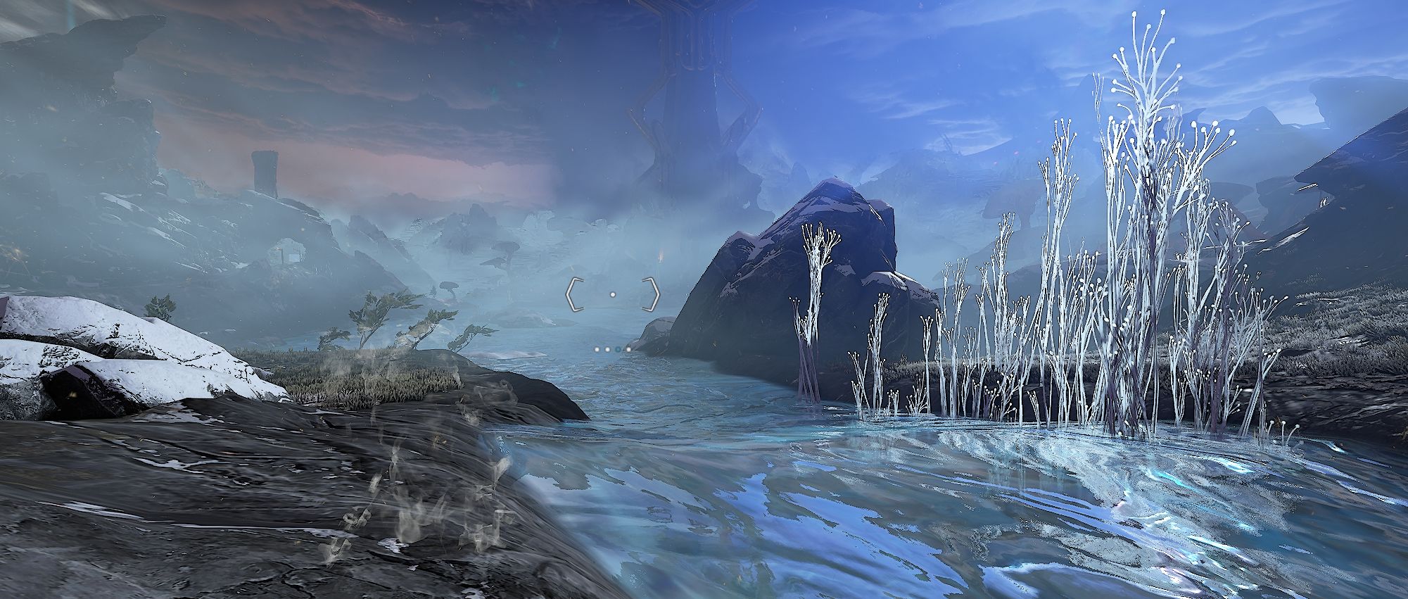 - Plaines d’Eidolon : océan, lacs et étangs. Le Tenno ne sait pas nager. Néanmoins peu de danger : si vous tombez à l’eau, vous réapparaîtrez à proximité du point d’eau. Mais si vous aviez lancé un pouvoir de bouclier ou autre, il aura disparu. Tomber à l’eau ou chercher à vous baigner à répétition va donc consommer de l’énergie !