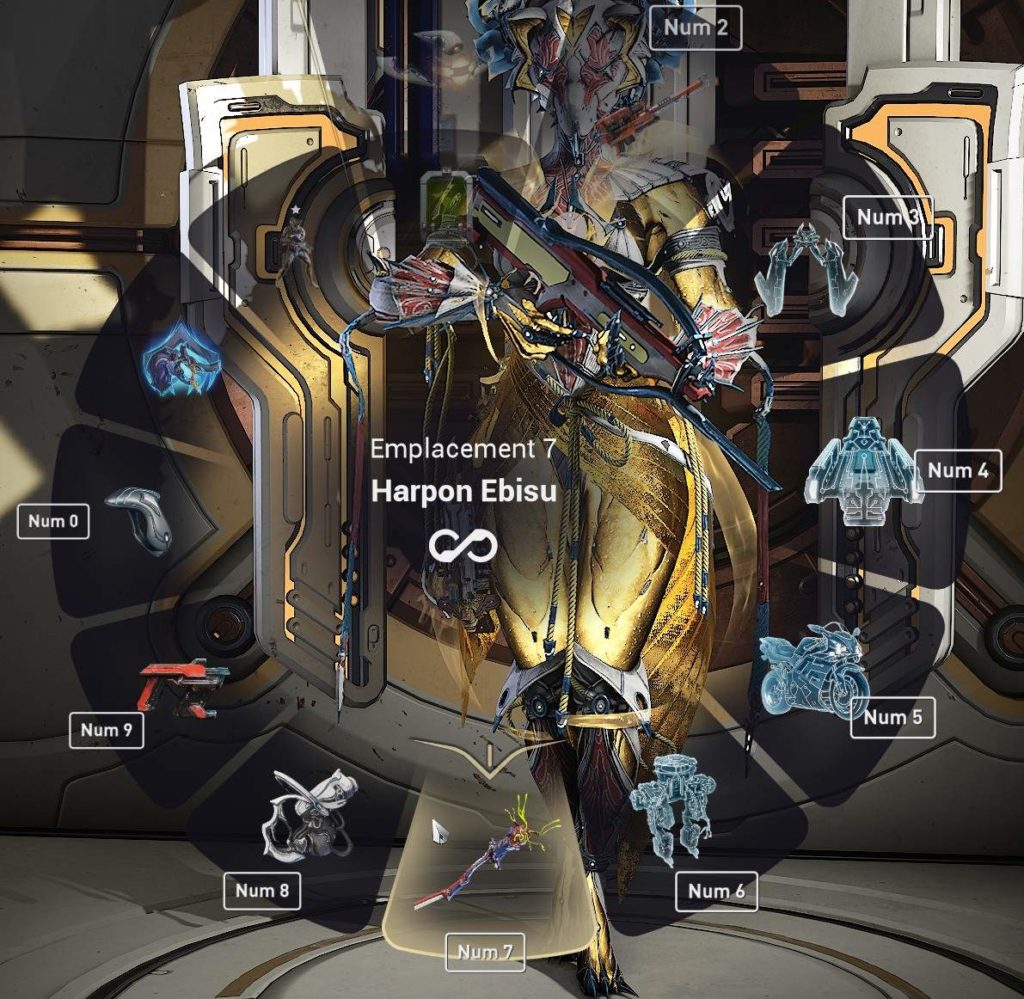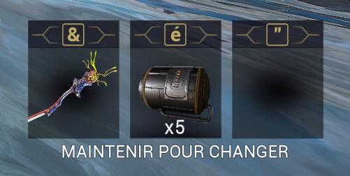 Attention ! Vous ne pouvez lancer de pouvoirs de Warframe si votre perceuse ou votre harpon est équipé.